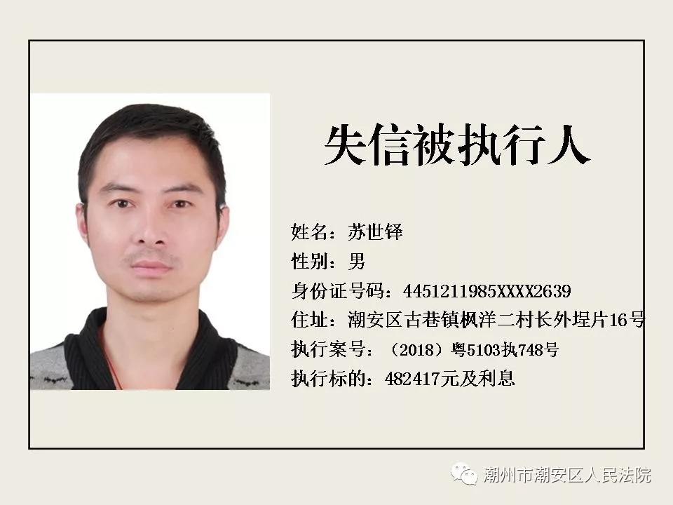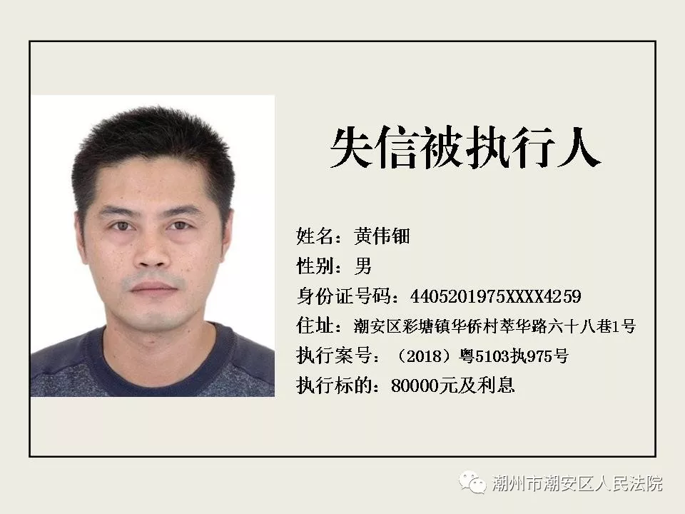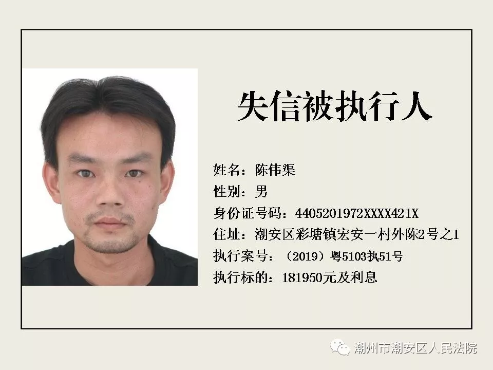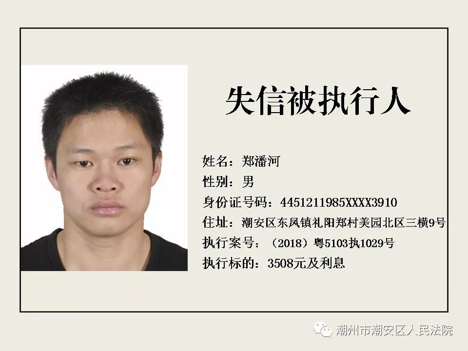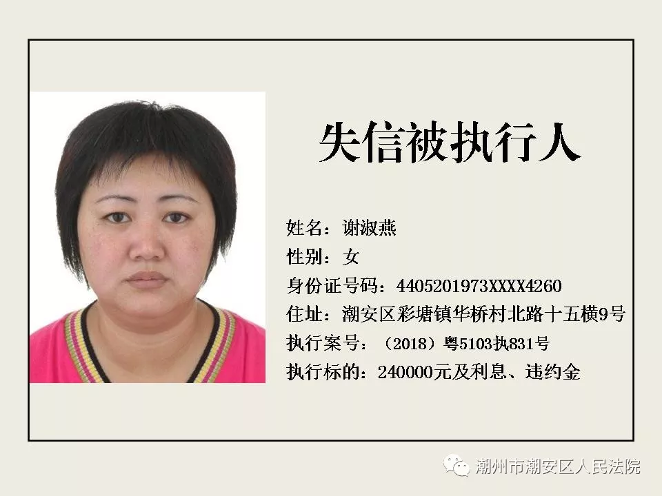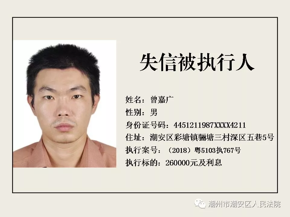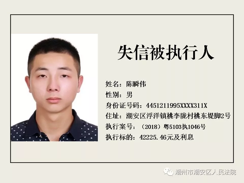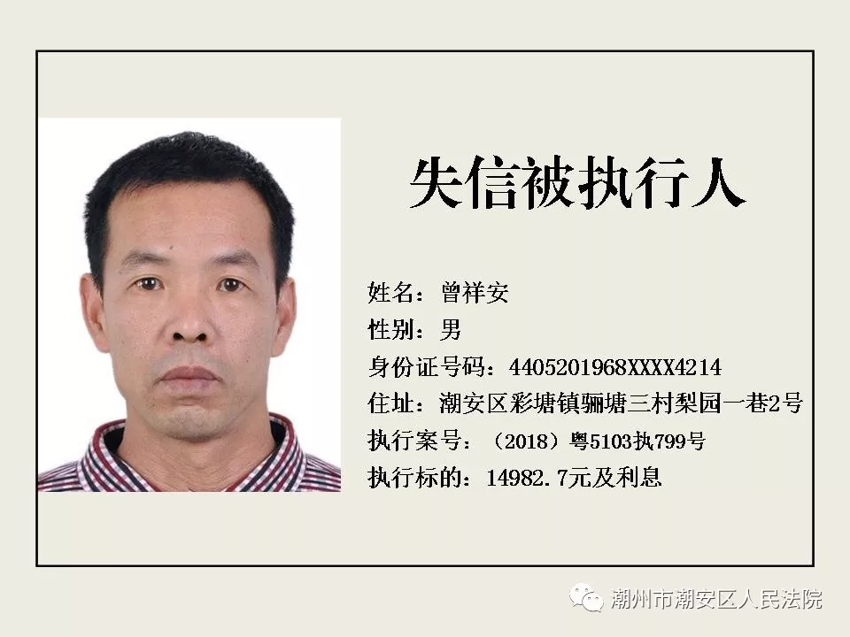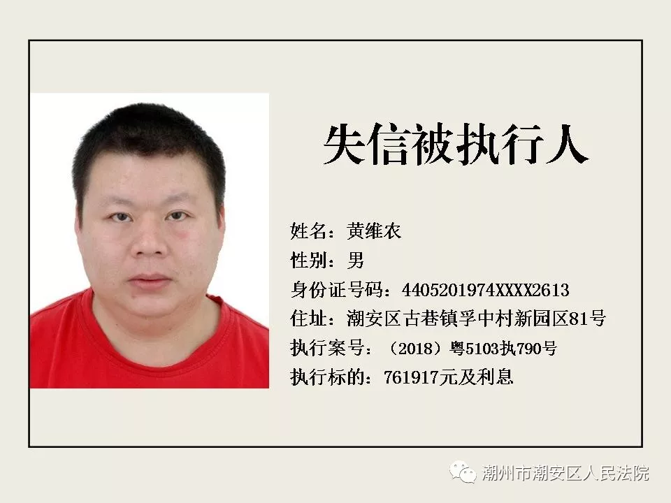 潮州市潮安区人民法院发布第九批失信被执行人公告