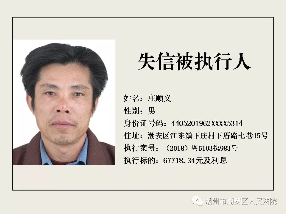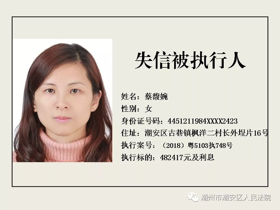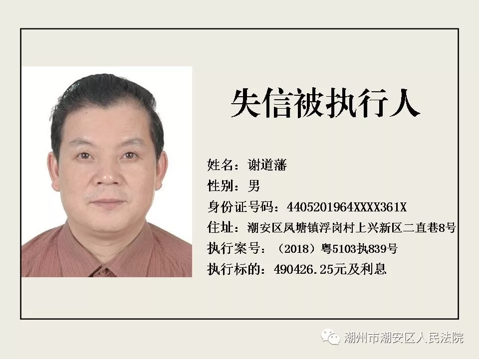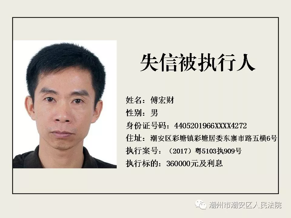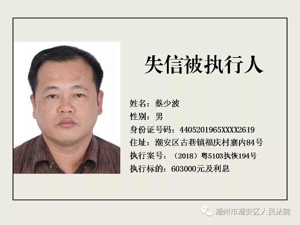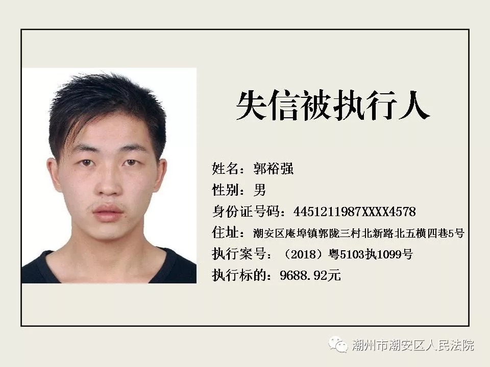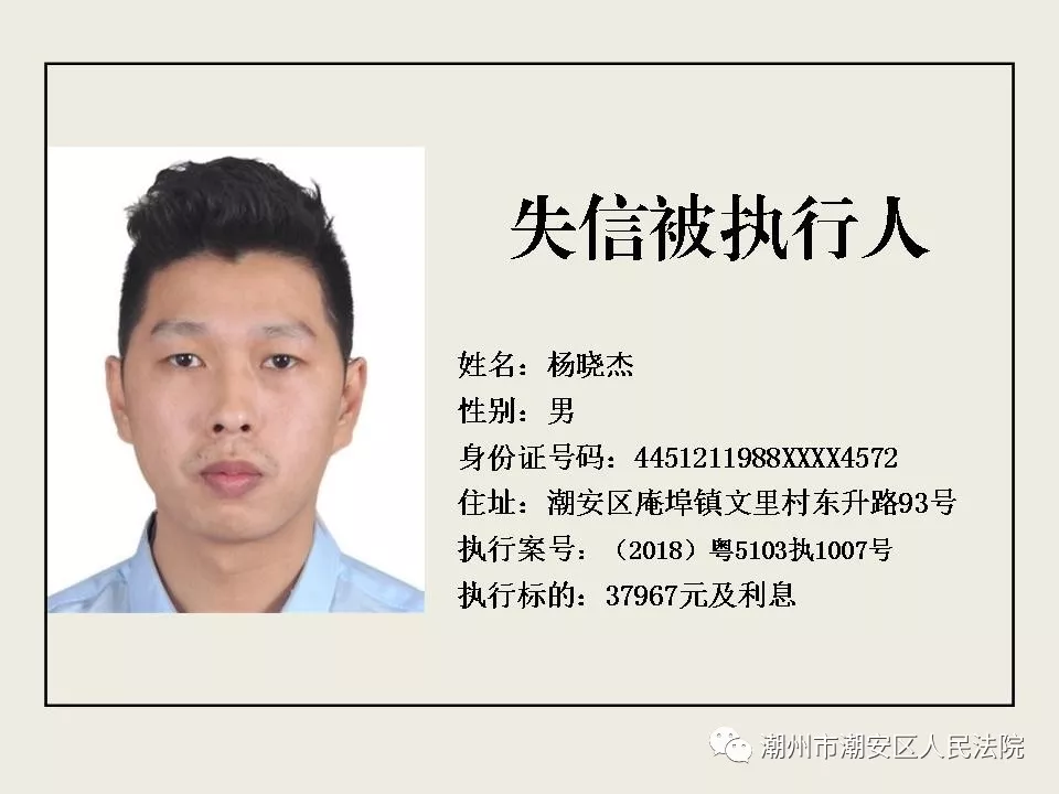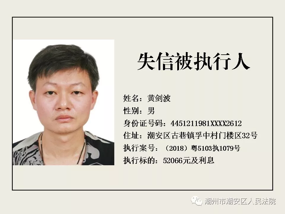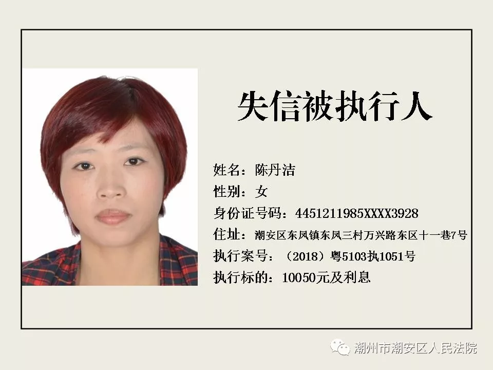 潮州市潮安区人民法院发布第九批失信被执行人公告