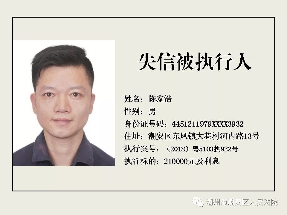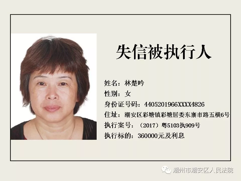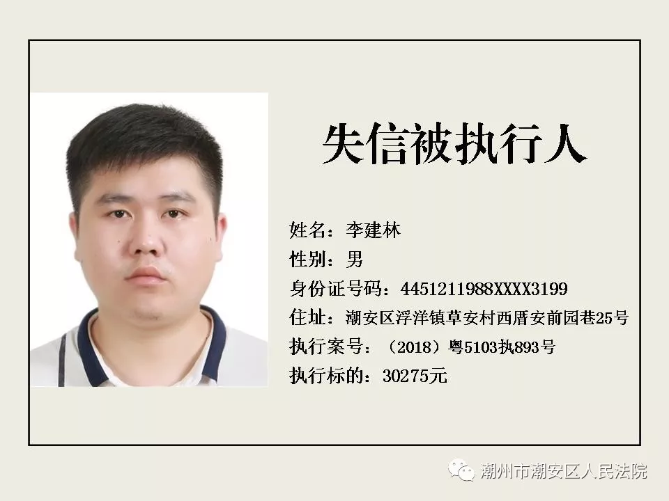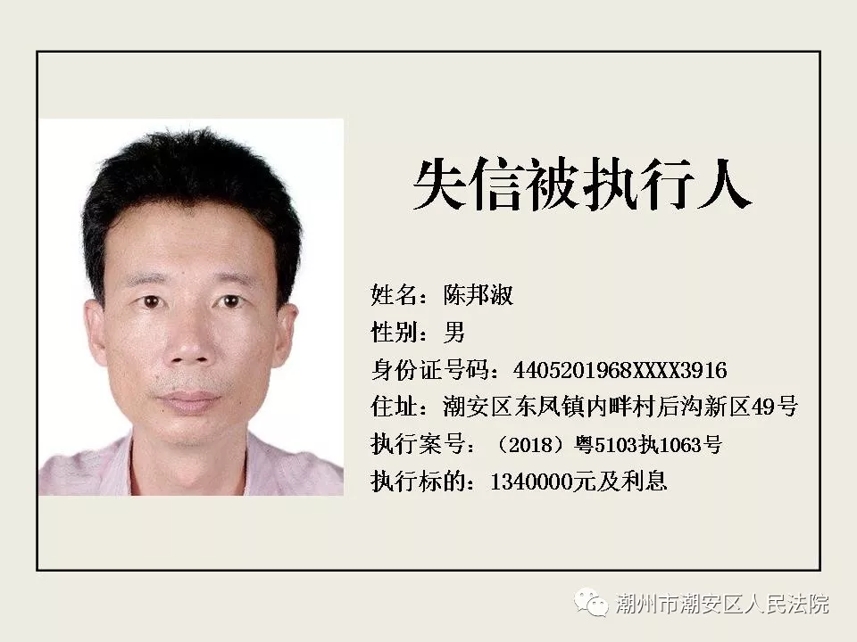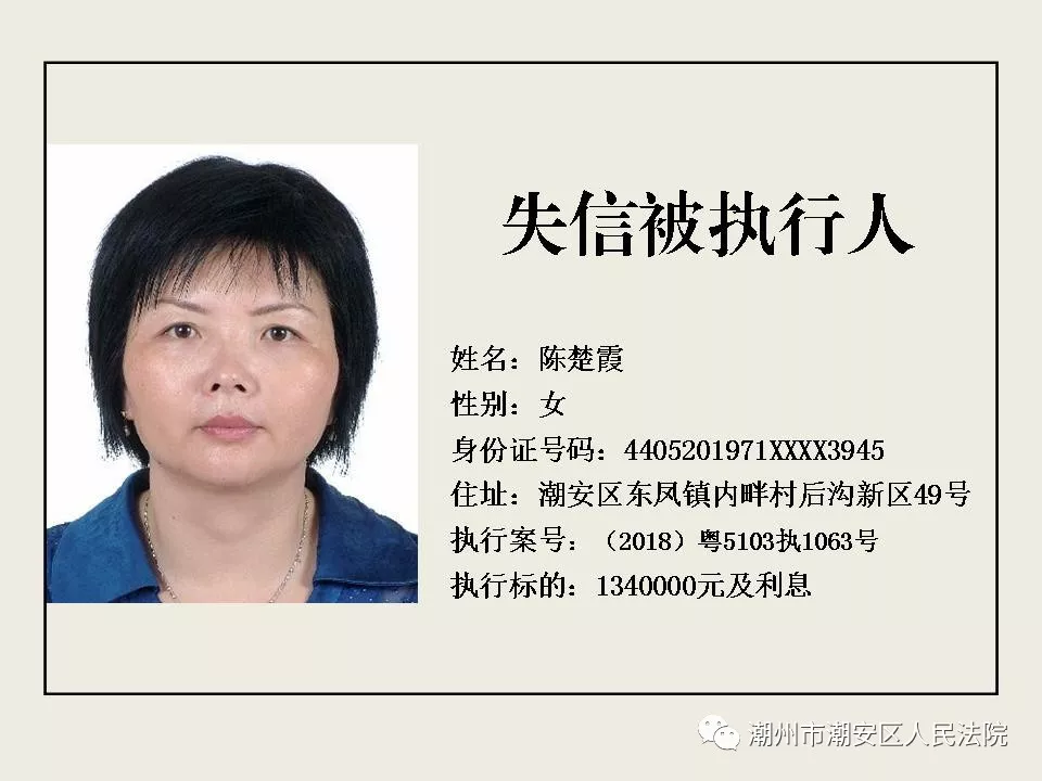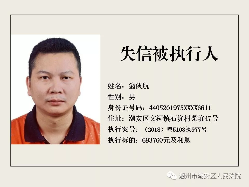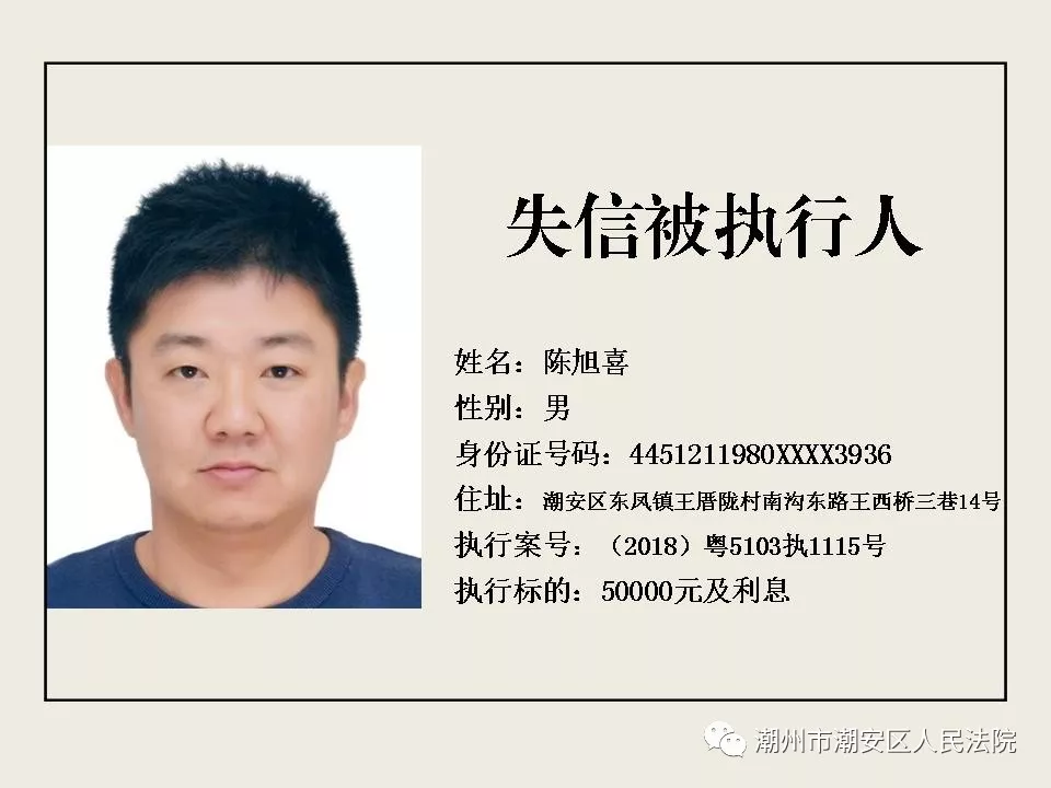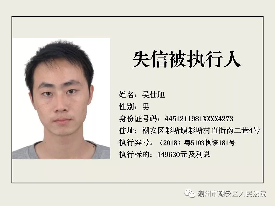 潮州市潮安区人民法院发布第九批失信被执行人公告