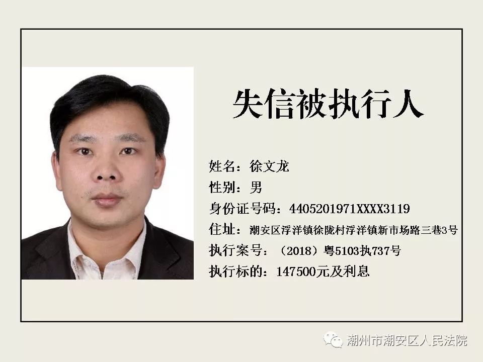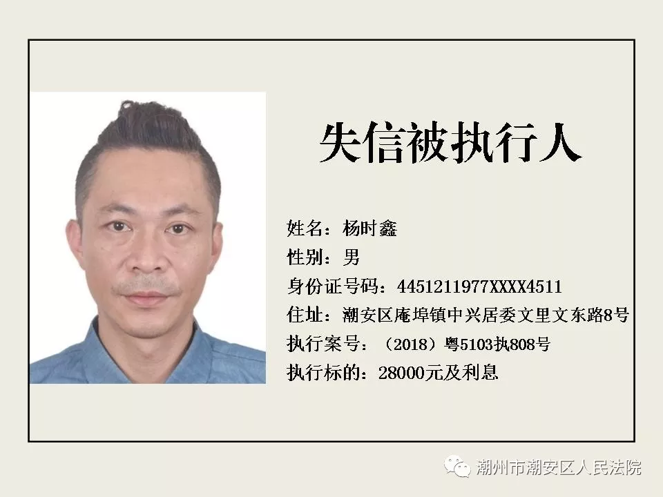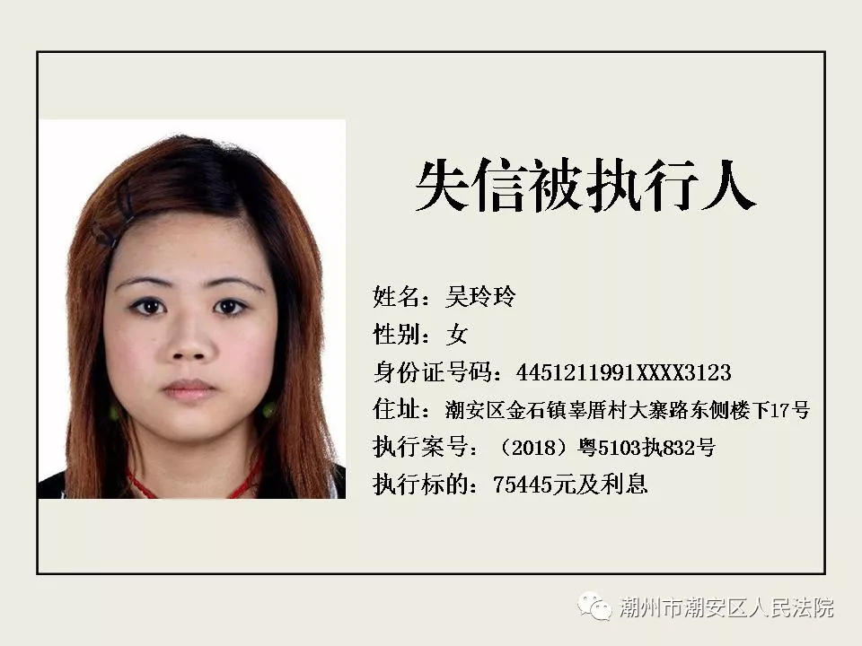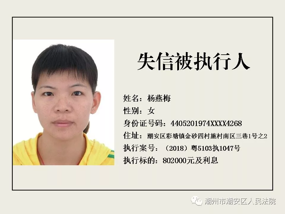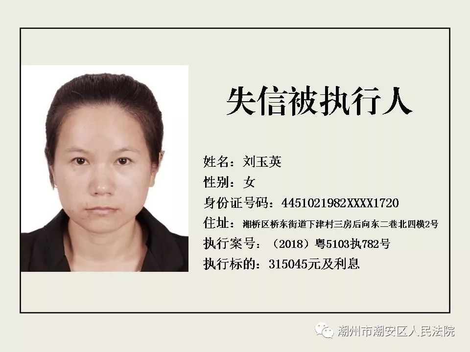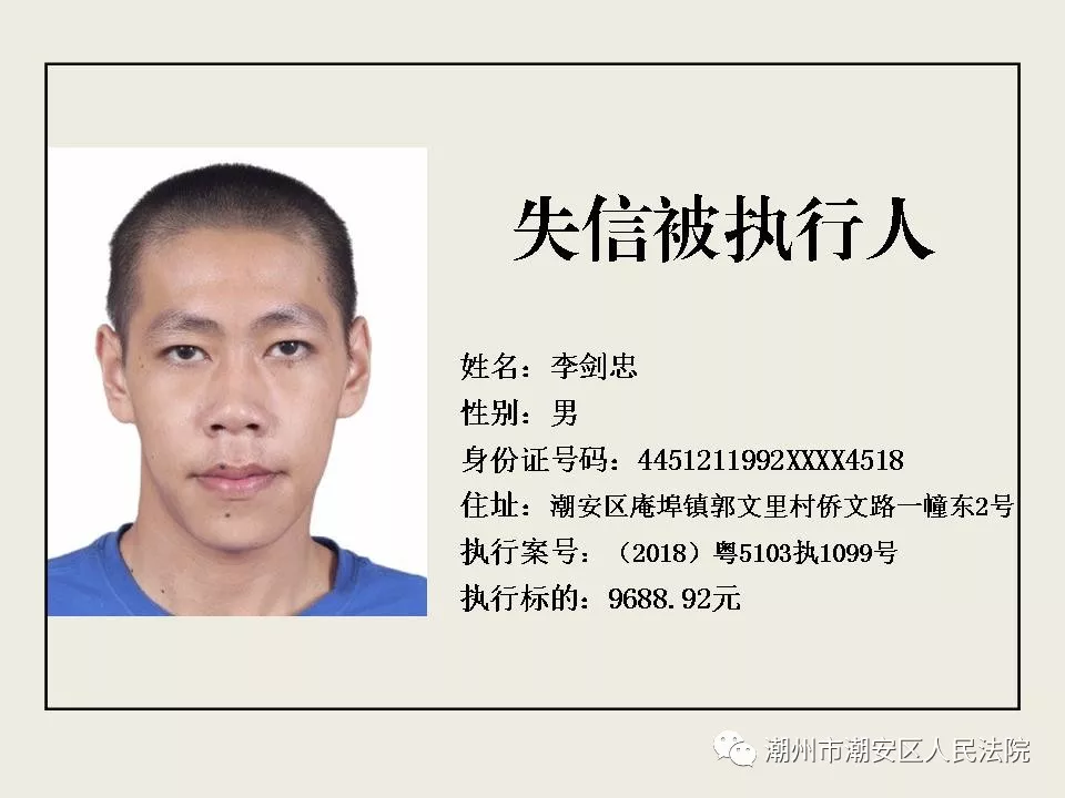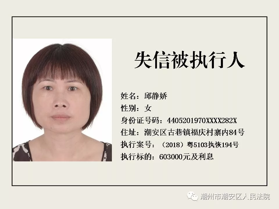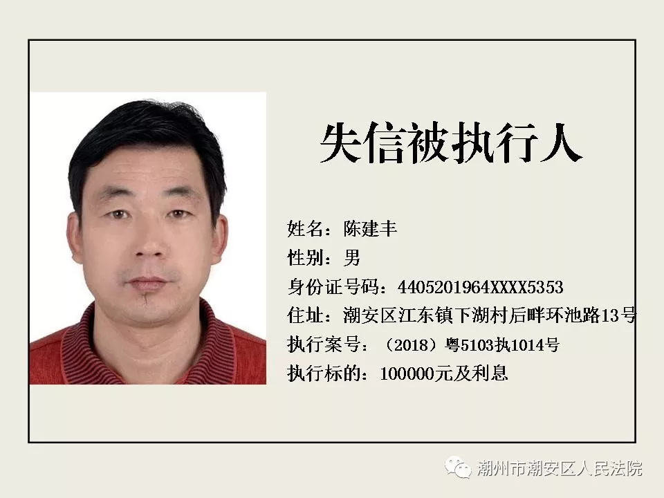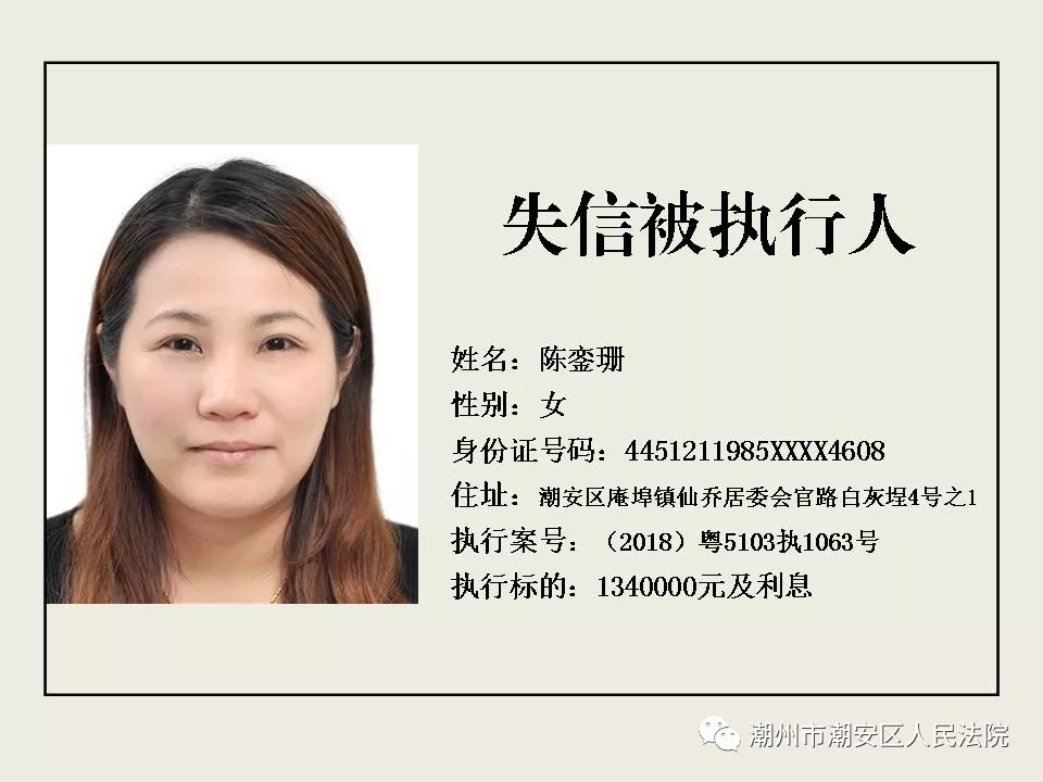 潮州市潮安区人民法院发布第九批失信被执行人公告