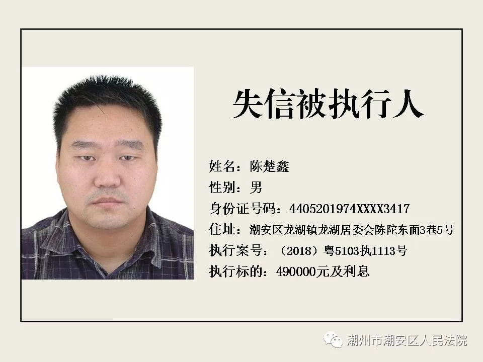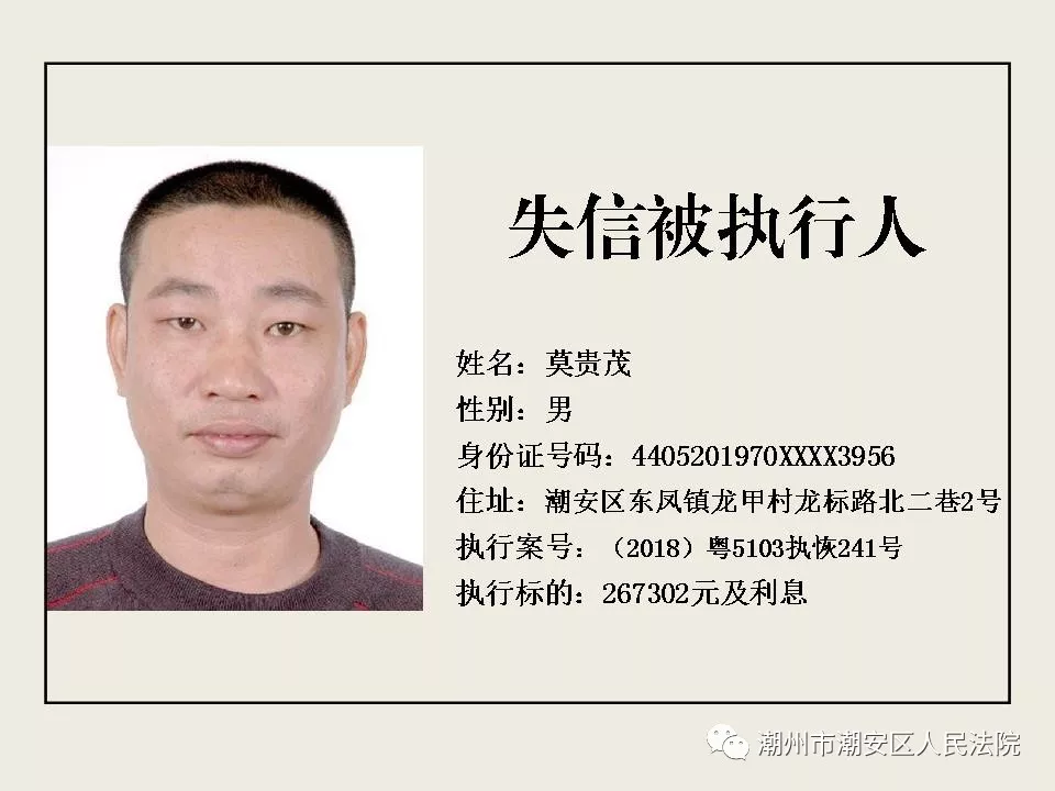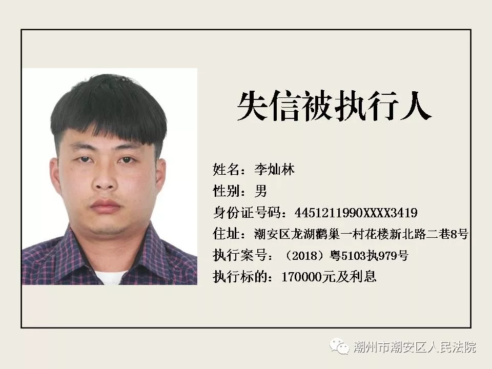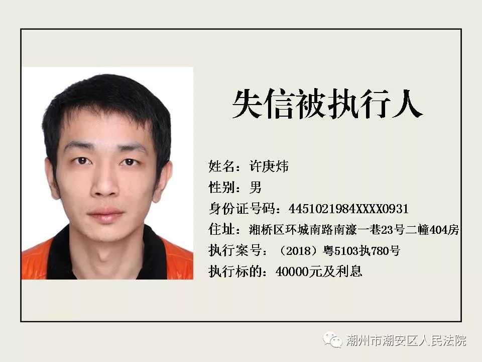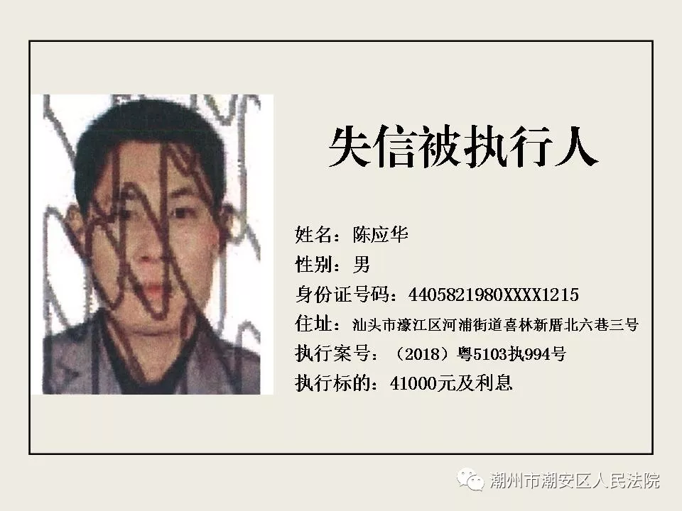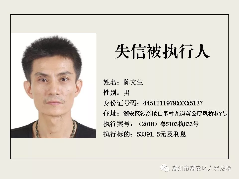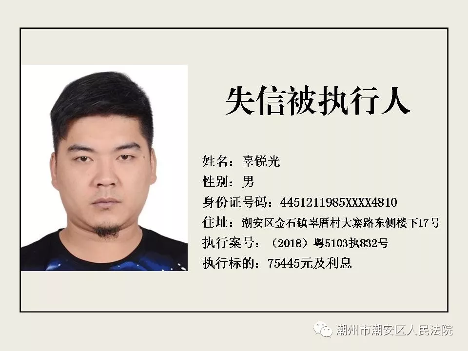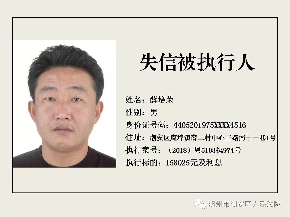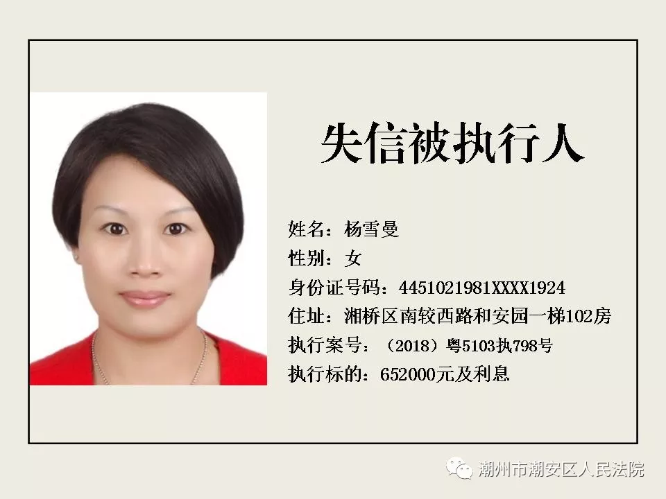 潮州市潮安区人民法院发布第九批失信被执行人公告