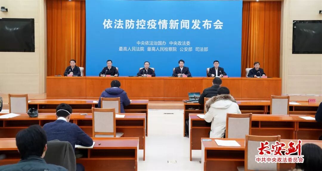 2月10日, 中央依法治国办、中央政法委、最高人民法院、最高人民检察院、公安部、司法部联合在京举行主题为“防控疫情、法治保障”的新闻发布会,公开发布学习贯彻习近平总书记在中央全面依法治国委员会第三次会议上的重要讲话精神和《中央全面依法治国委员会关于依法防控新型冠状病毒感染肺炎疫情 切实保障人民生命健康安全的意见》,制定实施《最高人民法院 最高人民检察院 公安部 司法部关于依法惩治妨害新型冠状病毒感染肺炎疫情防控违法犯罪的意见》的有关情况。中央依法治国办副主任、司法部部长傅政华,最高人民法院副院长杨万明分别通报有关情况,中央政法委副秘书长、新闻发言人、中央依法治国办组成人员雷东生主持发布会。