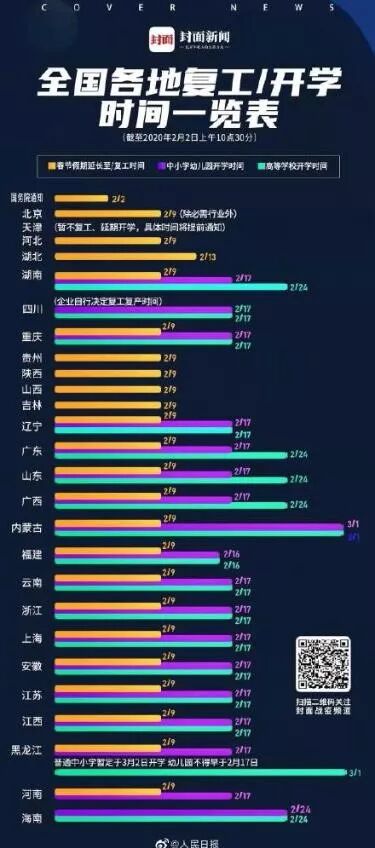 全国各地复工复课具体时间表汇总