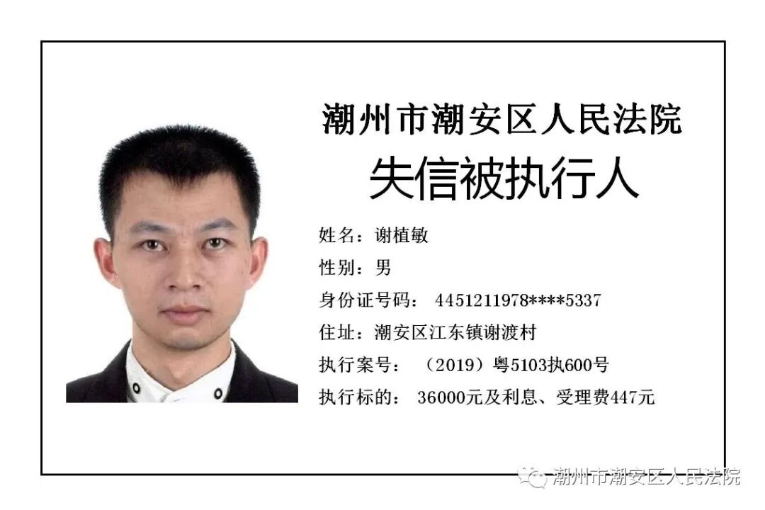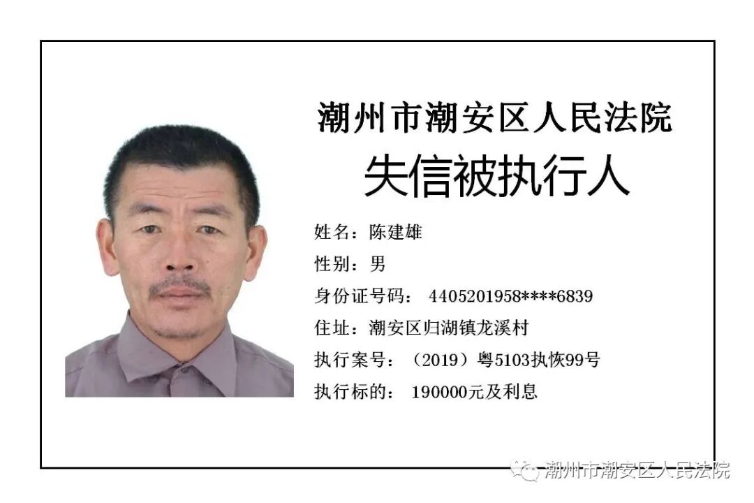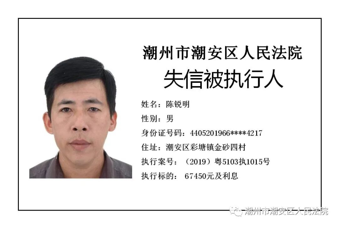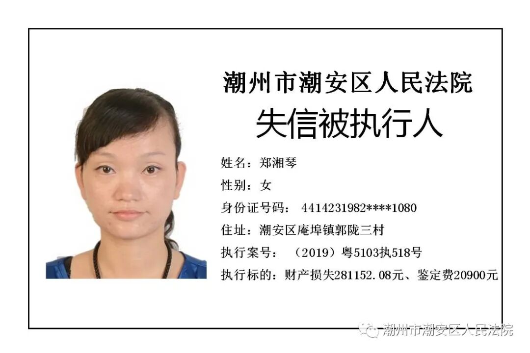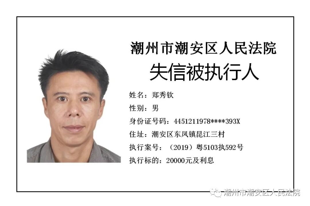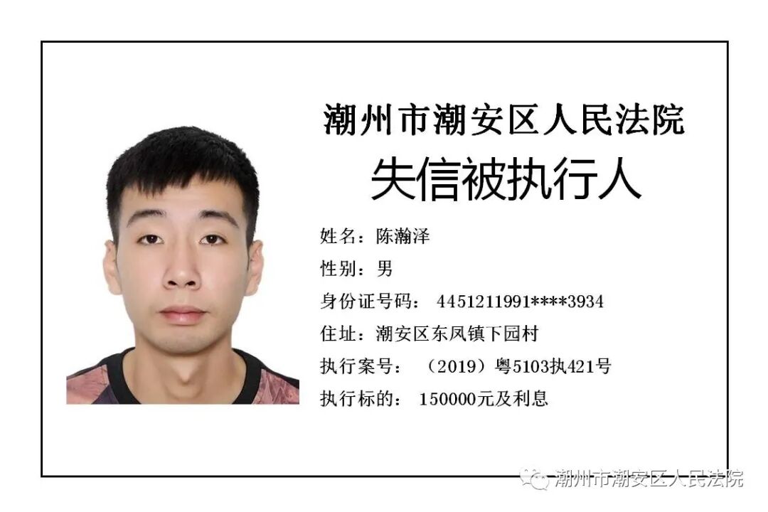 潮州市潮安区人民法院发布2020年第一批失信被执行人公告
