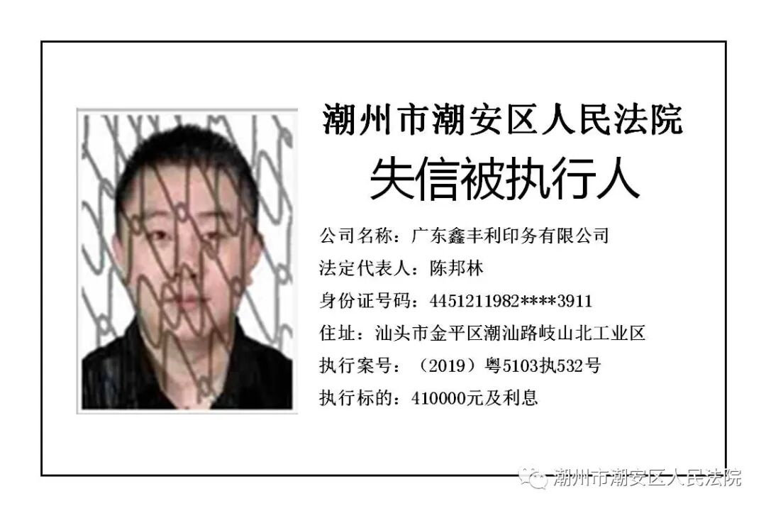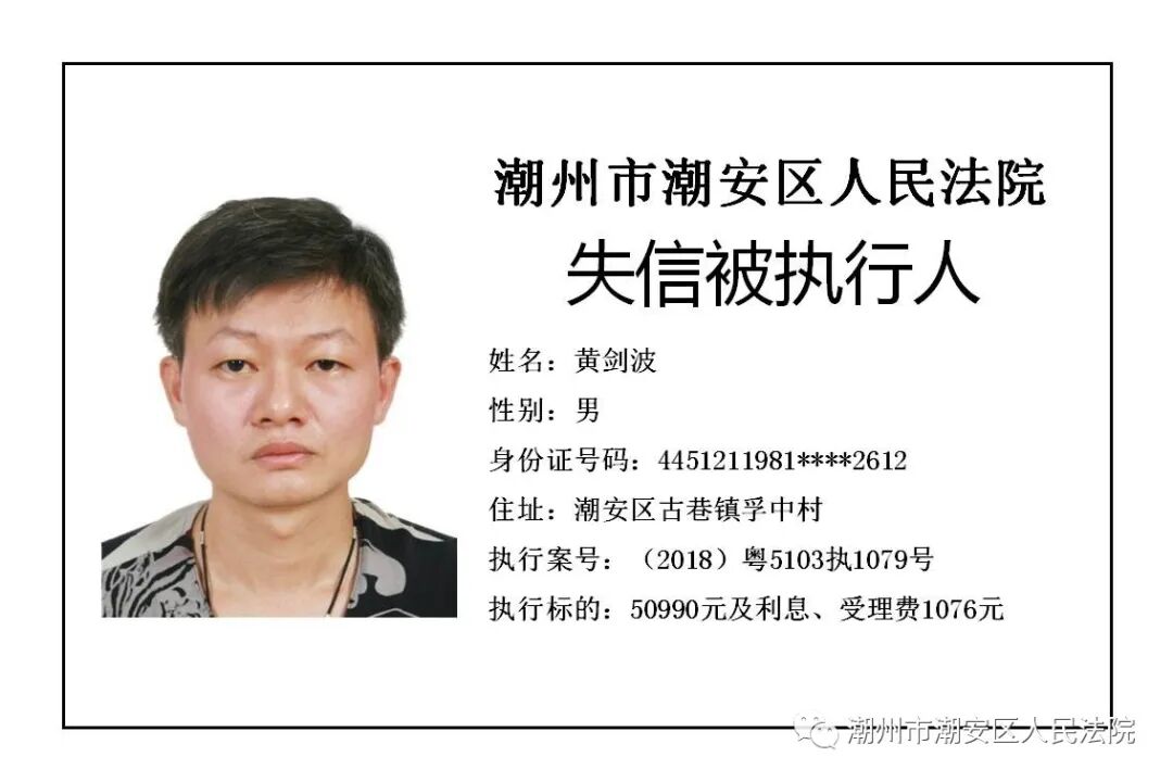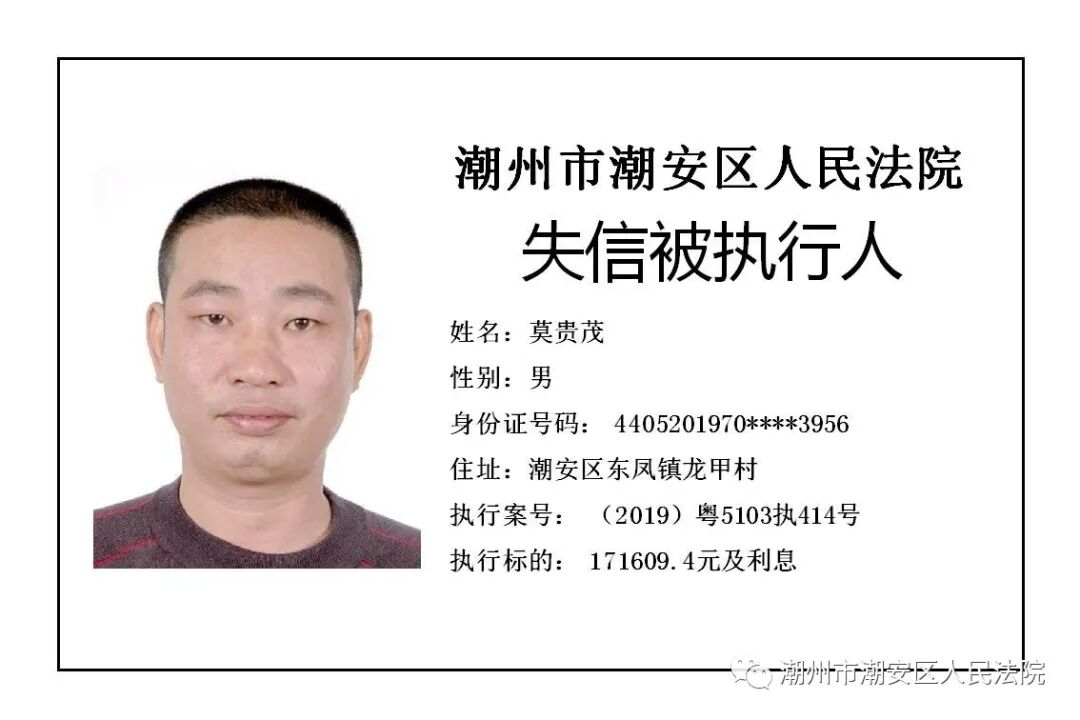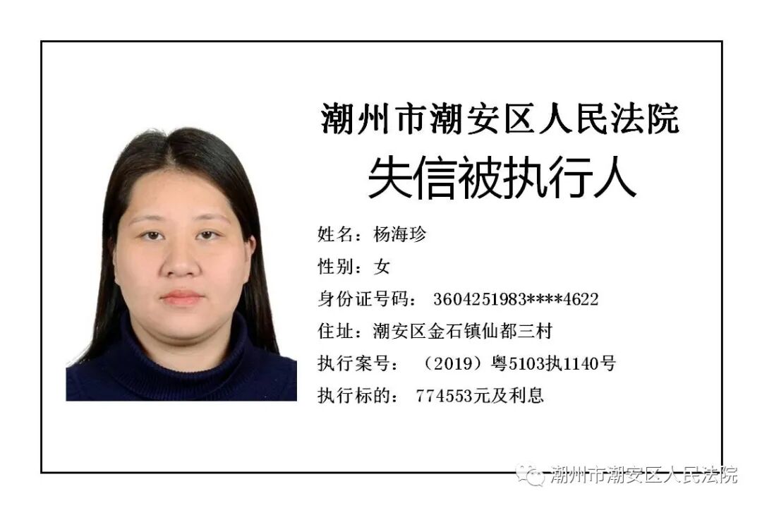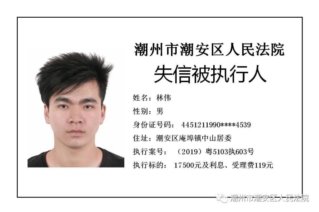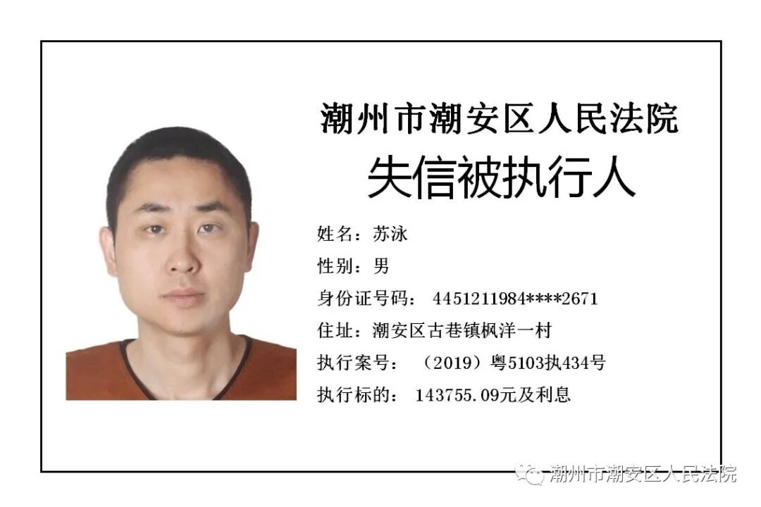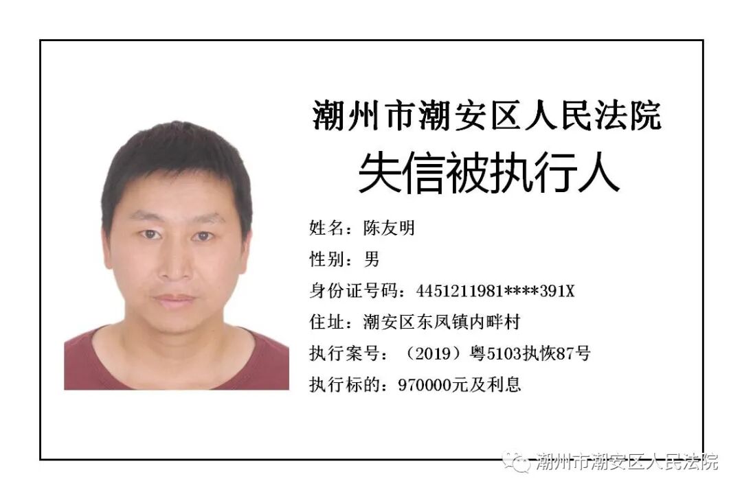 潮州市潮安区人民法院发布2020年第一批失信被执行人公告