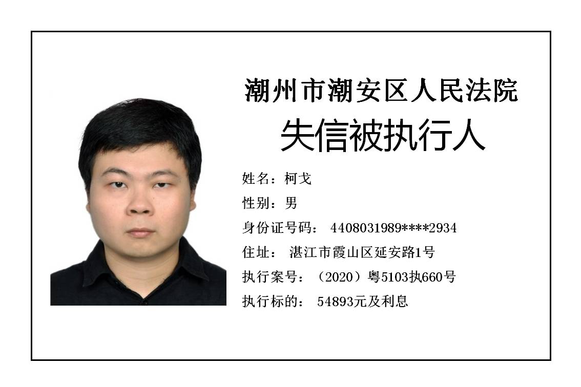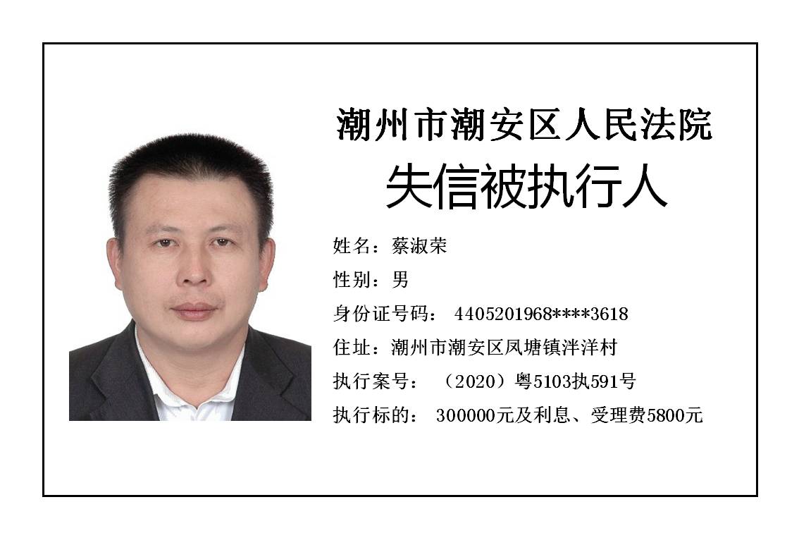 潮州市潮安区人民法院发布2020年第六批失信被执行人公告
